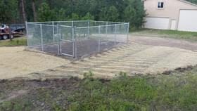 Looking for a security or keep vehicles in a yard and people out? Chain link fence is good for that, as you can get different gauges of fabric and posts, but you can also do barbed wire on top and slats to help with the privacy.